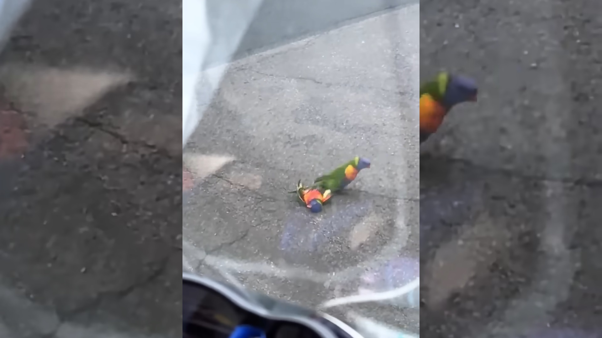 On the road lay a rainbow lorikeet — still, weak, barely breathing. Beside it stood another lorikeet, frantically trying to wake its companion. It nudged, pecked, and even used its tiny feet to tap on the other bird’s chest again and again — as if performing CPR. The sight was almost too painful to watch.