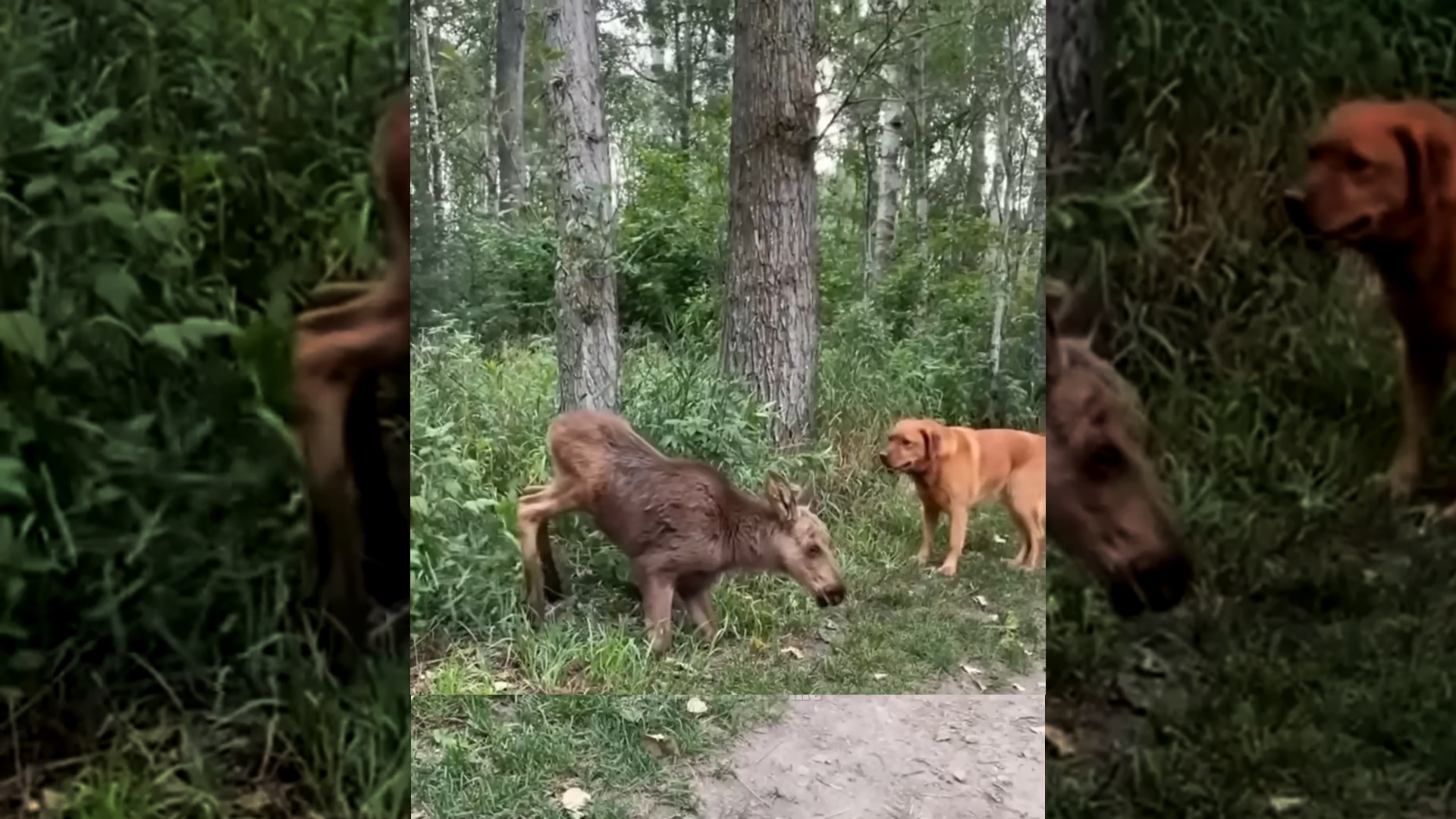 The moose became affectionate and gentle, often resting its head on his lap and enjoying his touch. It loved carrots, fresh greens, and playing in the yard with the golden dog.